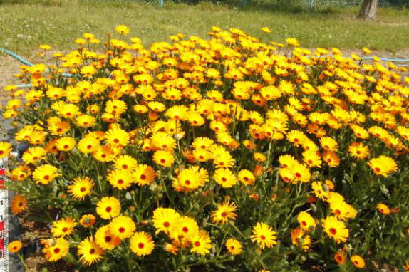 従来のキンセンカとヨーロッパ原産のキンセンカを交配して育成した一重咲きの品種。最盛期の花つきの良さは圧巻で、非常に花つきが良く1株でもボリューム感があった。また、株がしっかりとした立性だが、分枝が良いので株元が透けることもなかった。ピンチ次第で草姿をガーデンデザインにあわせた活用もできるだろう。梅雨時期にもうどんこ病などの病気にかからず、連続して開花し続ける。最盛期を過ぎた夏場では、花径が小さくなり花数は減少するにしても、夏の暑さに耐えて枯死することなく長期間咲き続け、使い方によっては春から秋まで楽しめるだろう。