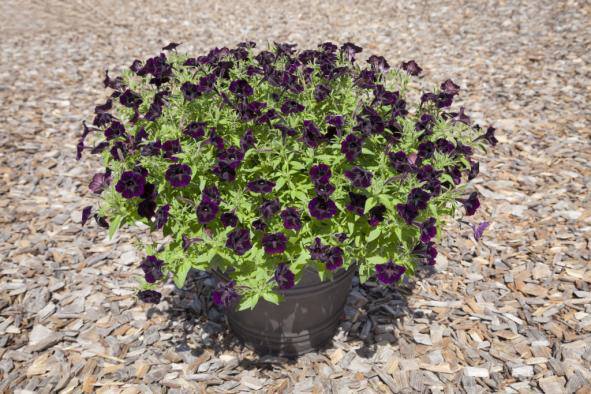 黒色に近い花色とベルベットのような質感が個性的な品種。株姿は1株ごとこんもりと丸くまとまるが、生育に従い横に広がる這い性で、コンテナでの栽培だけでなく、花壇でも旺盛に育ち、梅雨時期でも病気にかからず、猛暑下でも休むことなく開花し続けた。花色が濃いために心配される花弁の傷みや花ガラが、露地花壇でもコンテナでもほとんど気にならないという点も高く評価された。カラフルな花色が多いペチュニアだが、シックな印象の素材として使用シーンや他の花との組み合わせを消費者に提案していけば、新しいガーデニングの楽しみを広げる期待が持てる。色の新しさ、美しさに加えて育てやすさも備えた消費者におすすめできる優れた品種である。